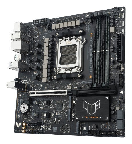 ASUS TUF GAMING B850M-PLUS II takes all the essential elements of the latest AMD Ryzen™ processors and combines them with game-ready features and proven durability. Engineered with military-grade components, an upgraded power solution and a comprehensive cooling system, this motherboard goes beyond expectations with rock-solid and stable performance for marathon gaming. TUF GAMING motherboards also undergo rigorous endurance testing to ensure that they can handle conditions where others may fail. This platform delivers the power and connectivity that advanced AI PC applications demand.