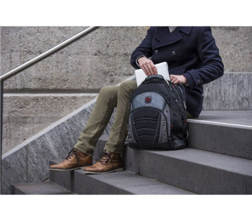16'' Laptop Backpack with Tablet PocketWhen your schedule is demanding and your life is full, you need a no-fuss bag that delivers on performance and style. Meet the Synergy, a backpack that features protective compartments for your laptop and tablet, and an essentials organizer to neatly store your everyday items. For speedy access there's a quick pocket, and the mesh side pockets will hold a water bottle or umbrella. Thanks to the stabilizing base, the bag stands steady, and shock-absorbing shoulder straps and the soft-grip grab handle ensure all-day comfort on the go.