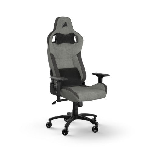 T3 RUSH Fabric Gaming Chair (2023) - Grey/CharcoalThe CORSAIR T3 RUSH gaming chair combines racing-inspired design and contoured comfort, with a breathable soft cloth. exterior, padded neck cushion and memory foam lumbar support.
