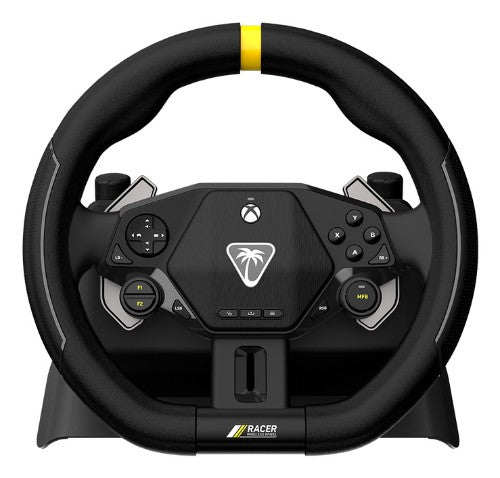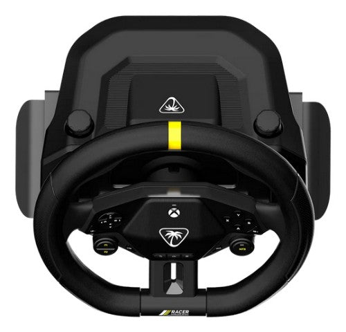 Enjoy wireless racing freedom, officially licensed for Xbox consoles & Windows PCs with the Turtle Beach Racer wireless racing wheel. Racer is a complete, all-in-one system, and connects via 2.4GHz low latency wireless connection with up to 30ft of wireless range and up to 30 hours of battery life. Race from your couch or lock in at a desk or table with either the included non-slip, adjustable lap mount, or integrated table clamps. Designed for your favorite racing titles as a wireless wheel, Racer also features controller mode for use as a wheel in driving games that do not support wheels like Rocket Racing.Specifications