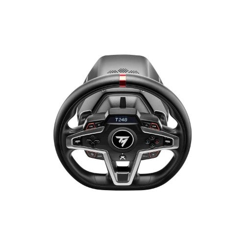 T248 features a new optimized HYBRID DRIVE system with a mixed belt and gear mechanism for powerful, realistic and versatile Force Feedback.T248 delivers 70% more power (compared with previous Thrustmaster T150 series hybrid racing wheels) and adds cutting-edge new features including Force Feedback presets that can be changed on the fly in games, magnetic paddle shifters, an interactive screen with more than 20 different displays, and a magnetic pedal set with 4 pressure modes on the brake pedal.