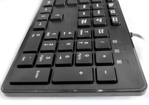 Accuratus 276R V4 - USB Slim Space Saving Full Size Keyboard made Using 100% Recycled Plastics and with Protected UV coated legendsThe Accuratus 274R V4 is a full size 105 key keyboard but in a very compact space saving case, making it ideal for situations where space is limited. Manufactured from 100% recycled plastics, this keyboard helps reduce plastic waste, lower carbon emissions, and conserve natural resources. By repurposing discarded materials, it prevents waste from ending up in landfills and oceans, contributing to a more sustainable, circular economy.