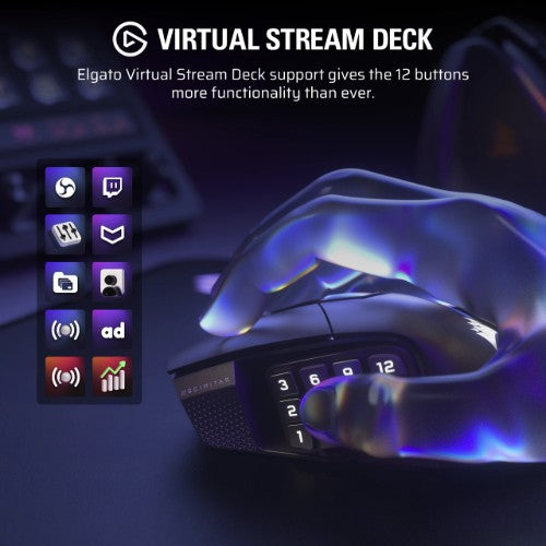 With native Elgato Stream Deck integration Stream Deck functions can be directly mapped to the SCIMITAR ELITE WIRELESS SE from the Stream Deck App.