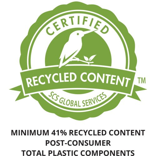 - Minimum 41% post-consumer recycled content of the total plastic components. Excludes PCB assembly, rechargeable battery, 2.4GHz dongle, and charging cable.