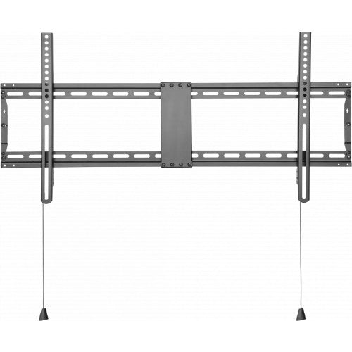 Vision’s VFM-W8X4V/2 wall-mount for large-format flat-panels is designed for price-sensitive installations where no fancy features are required. To hit the right price point and ease of installation, we’ve simplified the design and engineered down the cost by reducing the amount of materials used, but without compromise on robustness and reliability. It fits any flat-panel LCD or LED screen from 47- to 75-inch with rear mounting holes up to 800x400mm apart with a maximum weight 60kg. Everything an installer needs to put the display on the wall is included in the box Flexible installation The VFM-W8X4V/2 mount is fast to fix, thanks to a proven design with slotted holes on the horizontal part to allow easy fix to stud wall and side-to-side adjustment. Everything included for installation Vision puts everything the installer needs in the VFM-W8X4V/2 pack, including a load of M5, 6 and 8 bolts in varying lengths to fix the vertical arms to the rear of the display. Safe Working Load of 60kg Vision puts everything the installer needs in the VFM-W8X4V/2 pack, including a load of M5, 6 and 8 bolts in varying lengths to fix the vertical arms to the rear of the display. Fits Displays of 47-to 75-inch Fits most displays sized from 47- to 75-inch, subject to VESA pattern and weight. Curved screens are not supported by this mount. Meets ADA Regulations The slim design holds the display just 29 mm (1.1-inch) off the wall, which not only looks better, reduces snagging and enables a higher safe working load rating, as well as meeting ADA regulations. Folding Frame The part that fixes to the wall comes pre-assembled to reduce fiddly assembly. It unfolds in seconds to deploy. Latches in Place Once in place locking strips slide up to prevent the assembly being lifted off the bracket by opportunistic thieves. Quick-release cords pull down to unlatch. Non-Tilt Strength comes from a simpler non-tilting design. Open Architecture The open centre of the wall plate allows cables to be fed into the wall easily, all completely hidden behind the display. Lockable Holes are in place to secure the display with a padlock (not included).