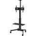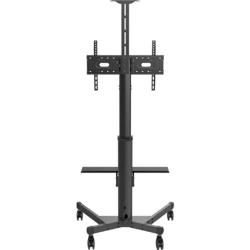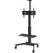 The cart includes a small top shelf for a video conference camera above the display. Both shelves are height adjustable.