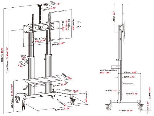 The Vision F27 floor stand is like the standard F25 but elevates with a premium aluminium column and better components which enhance rigidity. It has a large bottom shelf, suited to accommodating Zoom and Teams video bars. Height-adjustment is with a simple-to-use hand crank, and it comes complete with all required components and offers an unparalleled lifetime warranty.These elegant floor stands are ideal for AV rentals, event centres, meeting room facilities, boardrooms, schools, or any setting where large format displays are used across various meeting areas.