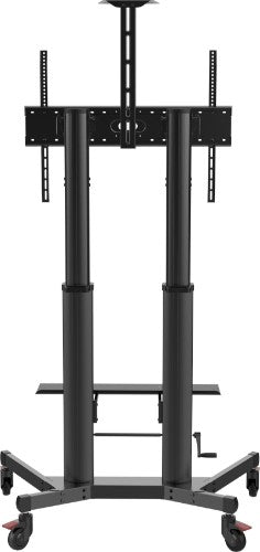 The 4-inch (100 mm) casters ensure the cart glides easily over thick carpet and minimizes vibration to sensitive electronic equipment. All four wheels can lock.
