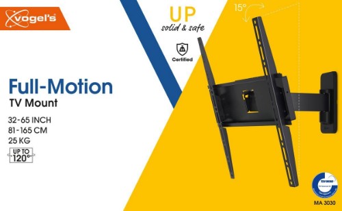 Regular price £55.34MA 3030 Full-Motion TV Wall MountKey Features Watch from anywhere in the room: turn up to 120° Tested up to 3 times max. TV weight Bolts and fischer® plugs included Avoid reflections: tilt up to 15°... -