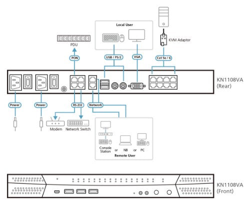 ATEN KN1108VA KVM switch Rack mounting Black