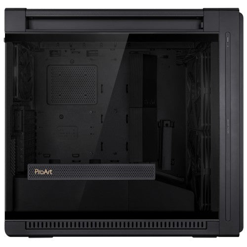 Flow with the BreezeEngineered for optimal airflow and enhanced cooling, the ProArt PA602 case is a dream for creative professionals seeking focused workflows. With a front panel designed for maximum air intake, thick pre-installed 140 mm rear fan and two 200 mm front fans, an integrated fan hub and support for a 420 mm radiator on the top, it delivers top-tier performance right out of the box. The ProArt PA602 caters to those in search of high-end thermal solutions. Meanwhile, a minimalist design ensures creators can work with fewer distractions.
