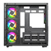 It comes pre-installed with four Infinity02 ARGB PWM fans—one rear exhaust and three reverse-blade side intakes—for powerful airflow and vivid ARGB lighting right out of the box. A 6-port PWM ARGB hub, 3-pin motherboard sync cable, and a remote control for lighting and fan speeds are also included, giving you full control over your build’s appearance and performance.