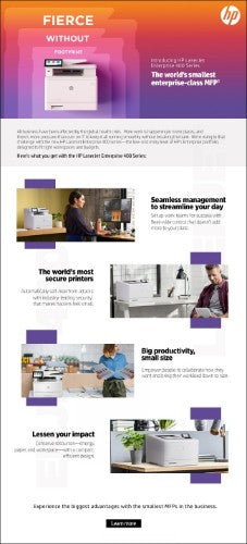 HP’s entry-level Enterprise-class Color MFP with speeds up to 28 ppm[9] and strongest security.[1]