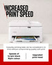 Whether it’s a vital work document or gig ticket, get what you need when you need it, thanks to an upgraded print head and increased number of nozzles supercharging productivity, resulting in super-fast First Print Out (FPOT) speeds of 7.5sec for a monochrome print or as quick as 9.5sec1 for your first colour document.