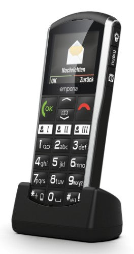 "Telephoning is everything" - that is the motto of the emporiaSIMPLICITY-LTE. This seniors' cell phone does not have a camera or any additional bells and whistles that could unnecessarily burden the device. This makes it particularly suitable for those who simply want to make calls safely and always be easily reachable.And what do you need for optimal phone calls? First of all, the best phone quality - this is ensured by modern 4G mobile technology. We have also equipped the emporiaSIMPLICITY-LTE with extra-large buttons that are illuminated and raised and have an excellent pressure point. Sounds good, doesn't it? But that's not all. There are also three speed dial buttons and you can choose the font size yourself. Thanks to the wide display, you can always see all your calls and thanks to the simple operation, everything works smoothly. The phone is IP54 certified, i.e. dust and splash-proof, and is particularly suitable for people who use a hearing aid (M4/T4). Other functions: LED flashlight, calendar, calculator, alarm clock or radio. The delivery also includes a charging cradle, headphones, a replaceable battery, an additional battery cover and the operating instructions.