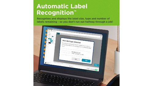 - AUTOMATIC LABEL RECOGNITION: Label printer lets you see the size, type, and number of remaining labels at a glance