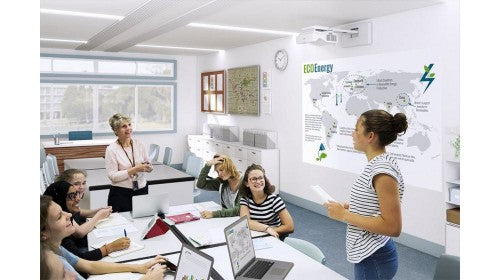 The EB-775F can be installed on wall or ceiling and can project onto almost any surface (even unconventional surfaces such as floor or pillars). It's UST design also makes it ideal for projecting large images in tight spaces. Choose between a black (EB-775F) or white (EB-770F) model to discretely blend it into your environment - it can even be hidden to create floating and borderless displays to surprise and delight audiences.