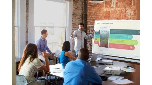 Offers MTR auto power-on function by HDMI video signal detection and an array of connectivity options including Dual HDMI and built-in wireless LAN to stream content from laptops or mobile devices with Screen Mirroring (Miracast) - PIN code support and display dialog username when connected Miracast to projector allows teacher to block student interruption while teacher is projecting. USB power supply (2A) for easy smart stick connection. Compatible with iProjection software for easy connectivity with mobile devices and content sharing.