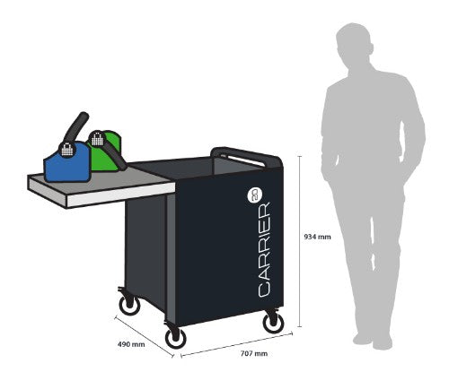 - Style meets functionality. The Carrier 20 Cart features a soft closing lid, so that the devices can be accessed from multiple sides and by more than one person at a time