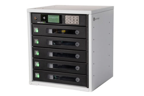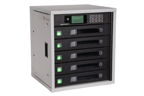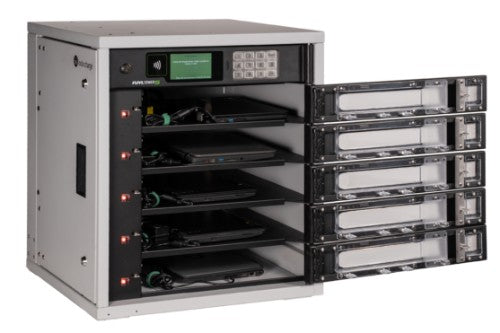 Intelligent Asset Management System that charges, stores, secures and manages assets for most mobile devices in 5 or 15 individually lockable compartments.Compatible & Efficient Charging Lockers. All 5 or 15 compartments are equipped with a power outlet and a 2.4 amp USB port, so you can charge almost any device, including: iPads, tablets, laptops, mobile phones, Chromebooks and more1.