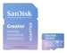 Capture. Create. Make your mark.Bring your vision to life with the SanDisk Creator microSD™ UHS-I card with Adapter. Capture stunning 4K and 5.3K footage effortlessly with pro-level performance. And with up to 1TB of storage, you can focus less on storage and more on chasing your next idea — whenever and wherever inspiration strikes. Once your shoot is wrapped, you can offload files at maximum speeds with a SanDisk QuickFlow™ microSD™ UHS-I Card USB-A Reader (sold separately). Then, elevate your creative content with a three-month membership to Adobe Lightroom, on us. From raw footage to final cut, SanDisk supports every step of your creative journey.