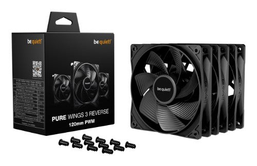 Pure Wings 3 120mm PWM Reverse Triple Pack is perfect as intake fan for spaces that are in the center of attention, for example as a side or bottom air intake of a fishtank-style PC case. With its reversed fan blades, you always keep the front of these sleek fans in your view.