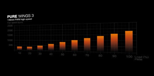 Pure Wings 3 140mm PWM high-speed Triple Pack features a closed loop motor. This technology is comparable with the cruise control in cars. When working against resistance, for example a fan grill or radiator, fans spin slower as a result. The closed loop motor technology constantly monitors the current fan speed and increases it to the target rpm, if necessary. As a result, Pure Wings 3 140mm PWM high-speed Triple Pack always operates at the desired speed, no matter the resistance.
