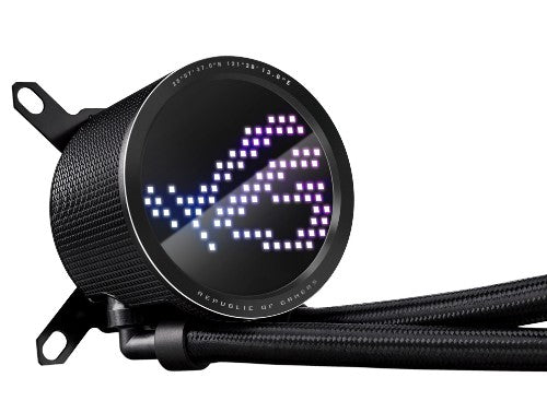 RYUO III 240 ARGBGloriously tame the thermals of your high-performance rig with the ROG Ryuo III 240 ARGB. Its premium shell frames an AniMe Matrix display that can be customized to uniquely express your allegiance. Encased deeper within is an 8th Gen Asetek pump that spins coolant through a higher capacity radiator chilled by 120mm ROG ARGB fans, giving your CPU the headroom to flex through everything.