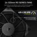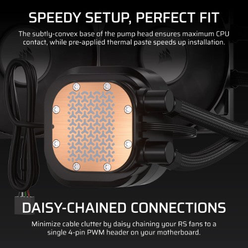 RS Fans push air efficiently through the radiator, while CORSAIR AirGuide technology and Magnetic Dome bearings deliver strong cooling with low noise.