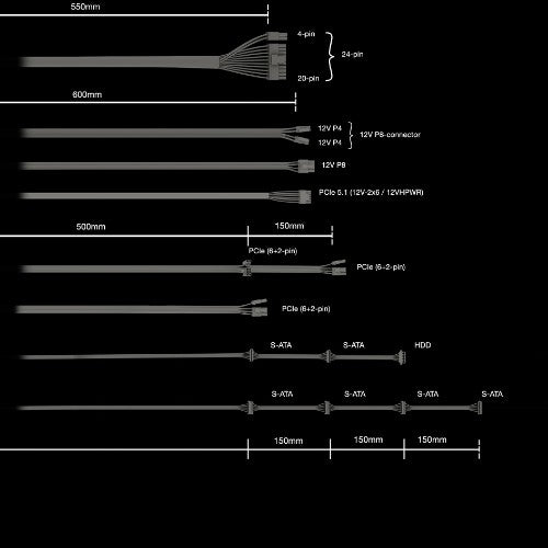 - ATX 3.1 PSU with full support for PCIe 5.1 GPUs and GPUs with 6+2 pin connectors