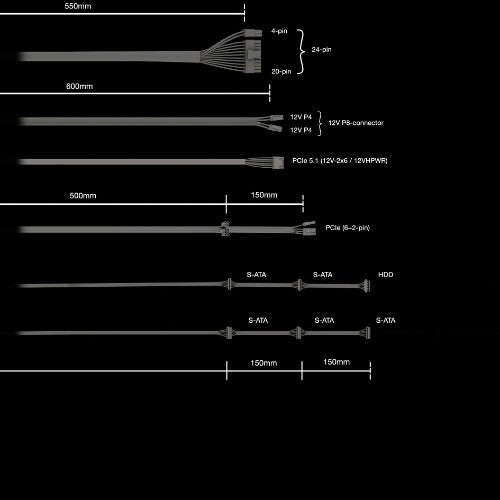 80 PLUS Gold, 550W, ATX 3.1, PCIe 5.1, 160 x 86 x 150mm