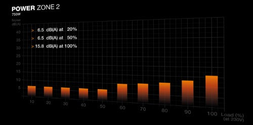 A large Pure Wings 3 140mm fan is keeping Power Zone 2 750W cool. While under low load, the fan turns off completely until its services are needed again for more demanding operations. This post-ventilation requires a short cooldown period of 2-5 minutes to avoid frequent and annoying starts and stops of the fan. Combined with the large fan for active cooling, this power supply is exceptionally silent in all load scenarios.