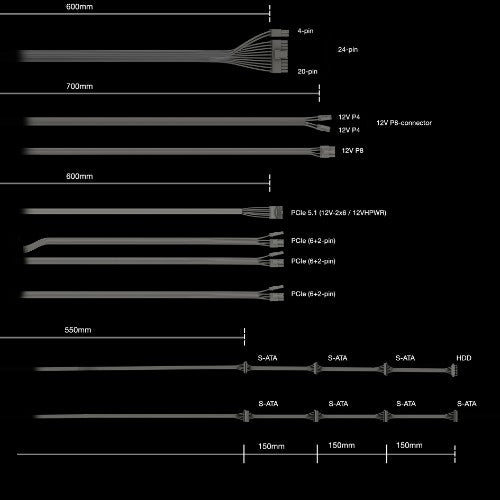| SATA power cable length | 550,700,850,1000 mm |