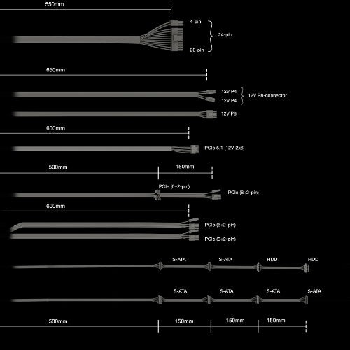| Cables included | AC, CPU, PCIe, Peripheral (Molex), SATA |