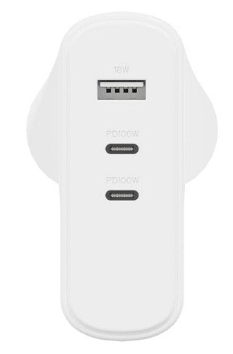 Charge your laptop at max speedIncredible 100W PD charging power from a single USB-C port that will fast charge even the most powerful USB-C laptops, including MacBook Pro, HP, Dell, Microsoft Surface and more. Both USB-C ports on this wall charger are rated to support up to 100W of power (not simultaneously).