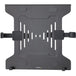 The notebook tray is made from steel to provide solid support and has ventilation slots on the bottom for optimal airflow. Padded arms grip and hold the laptop and can be positioned independently anywhere along the sides of the tray, allowing maximum compatibility to avoid obstructing the laptop ports. Four anti-slip rubber pads help prevent the laptop from sliding and avoid scratches on the bottom. Stoppers on the tray with variable heights prevent the laptop from sliding off at steeper angles. Optionally, the padded arms can be removed to support any laptop thickness at the expense of support when used at steeper angles.