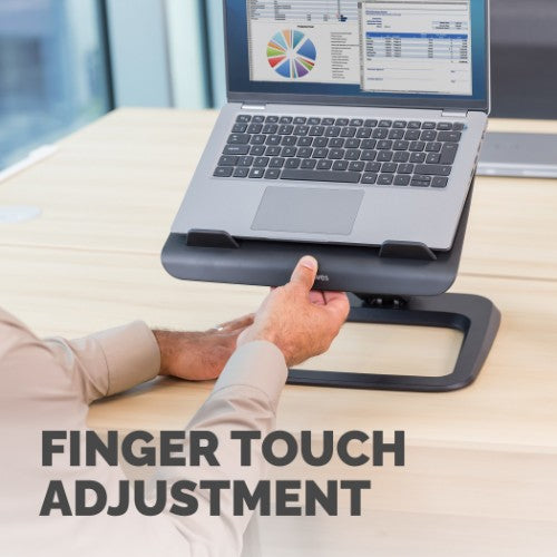 - MINIMISE DISCOMFORT - Help minimise discomfort in your workspace by placing your laptop at a more ergonomically correct viewing position to suit you with the Fellowes Hana LT laptop stand, relieving any neck and eye strain