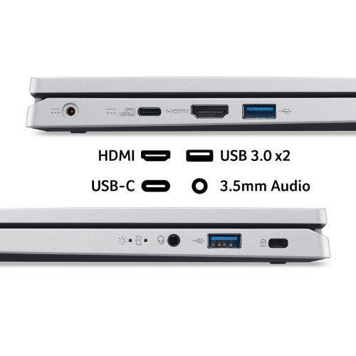 You get a complete array of connectivity options as standard with the Aspire Go. There’s integrated Wi-Fi 6 for getting online, as well as a full-function USB-C port that supports data transfer, video output and charging via a single cable, plus two more USB ports and an HDMI connection for monitors or displays.