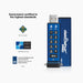 The iStorage datAshur PRO USB 3.0 flash drive’s advanced security features deliver complete data security and guarantees maximum protection of your data at all times. The design of the flash drive includes a rugged extruded aluminium sleeve that is dust and water resistant to IP57 rating and crush resistant, protecting the drive from physical damage whilst keeping your data ultra-secure. Built-in the drive is a rechargeable battery allowing the user to enter a 7-15 digit PIN via the on-board keypad before connecting the device to a USB port. All data transferred to the drive is encrypted in real-time with military grade AES-XTS 256-bit hardware encryption.