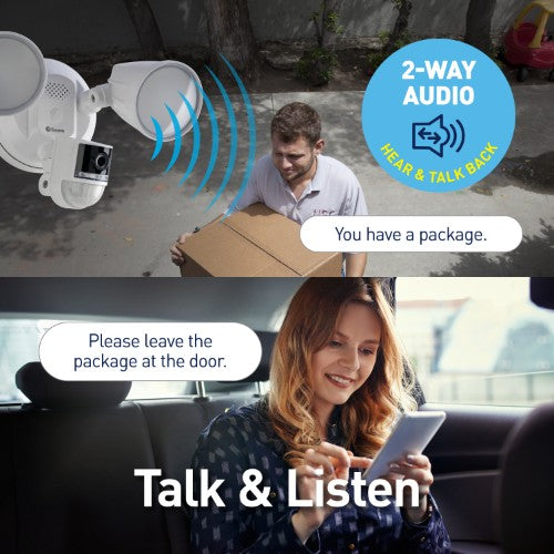 - Everything a Burglar Doesn’t Want. Evidence. Visibility. Interaction. Warning. It’s the ultimate deterrence with powerful floodlights, 2-way talk, video recording & siren combining to ensure your property is safe