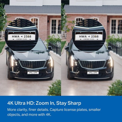 4K resolution has 4x the number of pixels compared to 1080p. This results in greater image clarity, finer details, and a sharper picture. Capture license plates, smaller objects, and more with 4K.