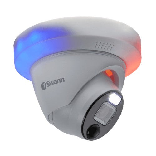 Regular price £70.504K Enforcer Dome Cameras PRO-4KDER with Controllable Red & Blue Flashing Lights, Spotlights & SirensDescriptionExtra Camera, More SecurityAdd this camera to your Swann DVR 5680 Series to cover blind spotsPrevent CrimeControllable sensor spotlights with red &...