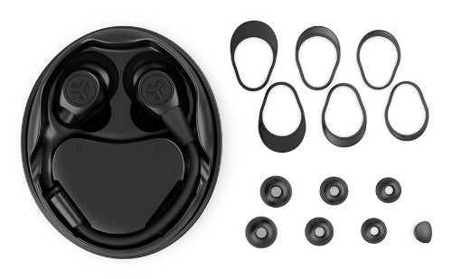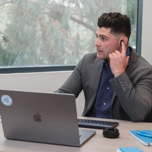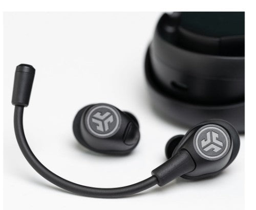 True wireless for life on the job.Meet the ultimate solution for the working professional: JLab Work Buds in-ear headset. With 55+ hours of total playtime, you'll have more than enough juice for all your conferences, calls and more. Say goodbye to muffled calls and hello to crystal clear communication with the detachable noise-canceling boom mic that fits either earbud. And, you'll never have to dig through your bag for your earbuds again thanks to the convenient USB-C charging dock that keeps everything organized and charged. Plus, with Bluetooth Multipoint technology and the JLab App, you can switch between devices and customize your sound to your heart's desire.