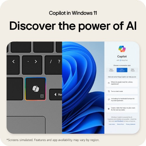 Sale price £1,999.99Regular price £2,699.99Intel Core Ultra 9 285H (24MB Cache), 32GB LPDDR5x-SDRAM, 1000GB SSD, 40.6 cm (16") WQXGA 2560 x 1600 OLED, Intel Arc 140T, NVIDIA GeForce RTX 5070 (8GB GDDR7), WLAN, Webcam, Windows 11 Home 64-bitKey Features Windows... -