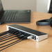 The USB 3.0 docking station adds triple-monitor support to your workstation, with resolution support up to 4K (3840 x 2160p) on one display and 2048x1152 on the other two. With more screens, combined with high resolution, the dock maximizes your screen real estate so you can simultaneously access multiple applications and compose on one display while referencing material on the other. You can also use your laptop screen for four displays in total, making it easy to manage several programs at once and avoid the nuisance of minimizing or rearranging windows.