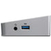 This triple-monitor docking station lets you transform your laptop into a full-sized workstation. It gives you five USB 3.0 ports (1x USB Type-C and 4x USB Type-A incl. 1x Fast-Charge port), a Gigabit Ethernet port, headset jack, and separate 3.5 mm audio and microphone ports.