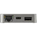 In addition to the video outputs, the portable USB-C dock gives you one 10G USB-C port and USB-A port to connect your latest and legacy USB devices. The adapter also integrates a Gigabit Ethernet port to access a wired network.