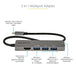USB-C Multiport Adapter | 4k 60Hz HDMI 2.0b | 100W Power Delivery Passthrough | 4-Port USB HubThis USB-C multiport adapter with DP 1.4 supports 4K 60Hz HDMI® and turns your MacBook Pro, Dell XPS, or other USB-C™ laptops or tablet into a workstation, anywhere you go. The USB Type-C multiport adapter provides 4K HDMI video output, three USB 3.2 Gen 1 Type-A (5Gbps) ports including one BC 1.2 charge port; one USB-C port supporting both the 100W PD passthrough, all through one connection to your laptop's USB-C or Thunderbolt 3™ port. Plus, it offers advanced charging through USB Power Delivery 3.0 and an extra-long attached 12-inch (30 cm) host cable for an extended reach to offer more set up flexibility.