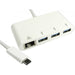 This is a USB 3 Type C to USB 3.0 3 port hub with Gigabit Ethernet, designed for connecting four USB devices to a host computer or another hub. With an integrated Gigabit port you can enjoy more flexibility. It can work on Macbook or Google new Chromebook Pixel and other USB 3 Type C supported devices.
