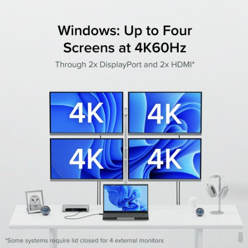 Regular price £341.4316-in-1 Thunderbolt 4 Dock with 100W Charging, 4K Quad Monitor Setup for Thunderbolt 4 Windows Laptops, Thunderbolt Certified Dock with 2x HDMI, 2x DisplayPort, 2.5G Ethernet, 7x USB, SDDescriptionThe Thunderbolt Certified 16-in-1 Quad docking station from... -